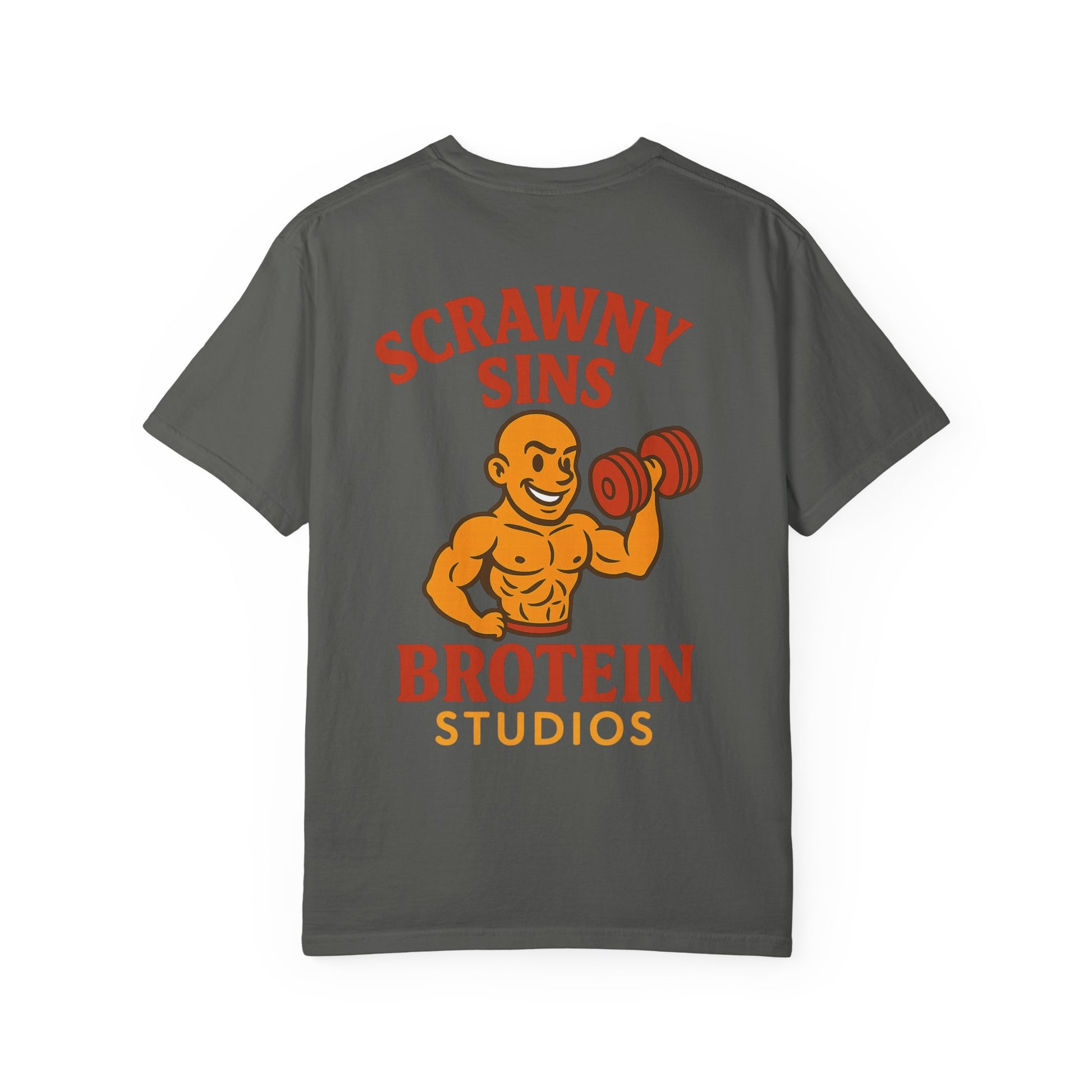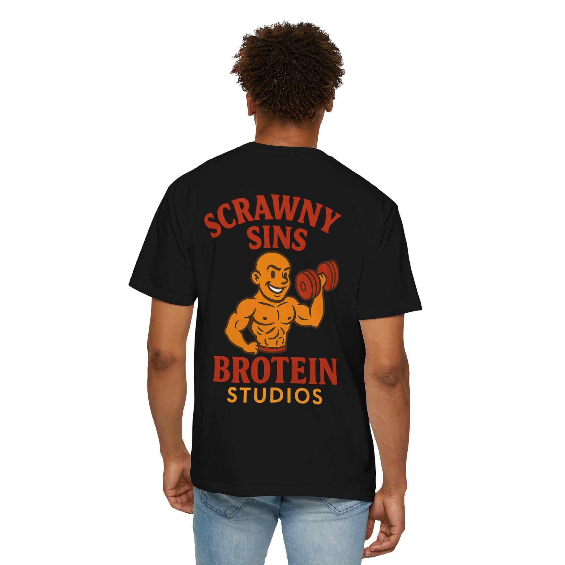 The Scrawny Sins tee is for those who may not lift heavy—but they look like they do (from a distance… in the dark). Inspired by the bald legend himself, this shirt is for every skinny king who never skips mirror day.